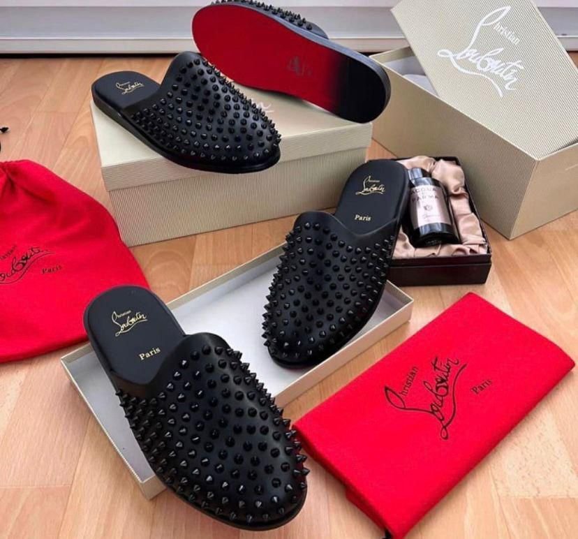 The sleek, pointed-toe silhouette offers an elegant structure, while the ultimate mark of luxury—the vibrant signature red lacquered sole—ensures they are instantly recognizable. Easy to slip on and off, these mules are a perfect blend of comfort and high-fashion attitude, designed for the individual who dares to stand out.
