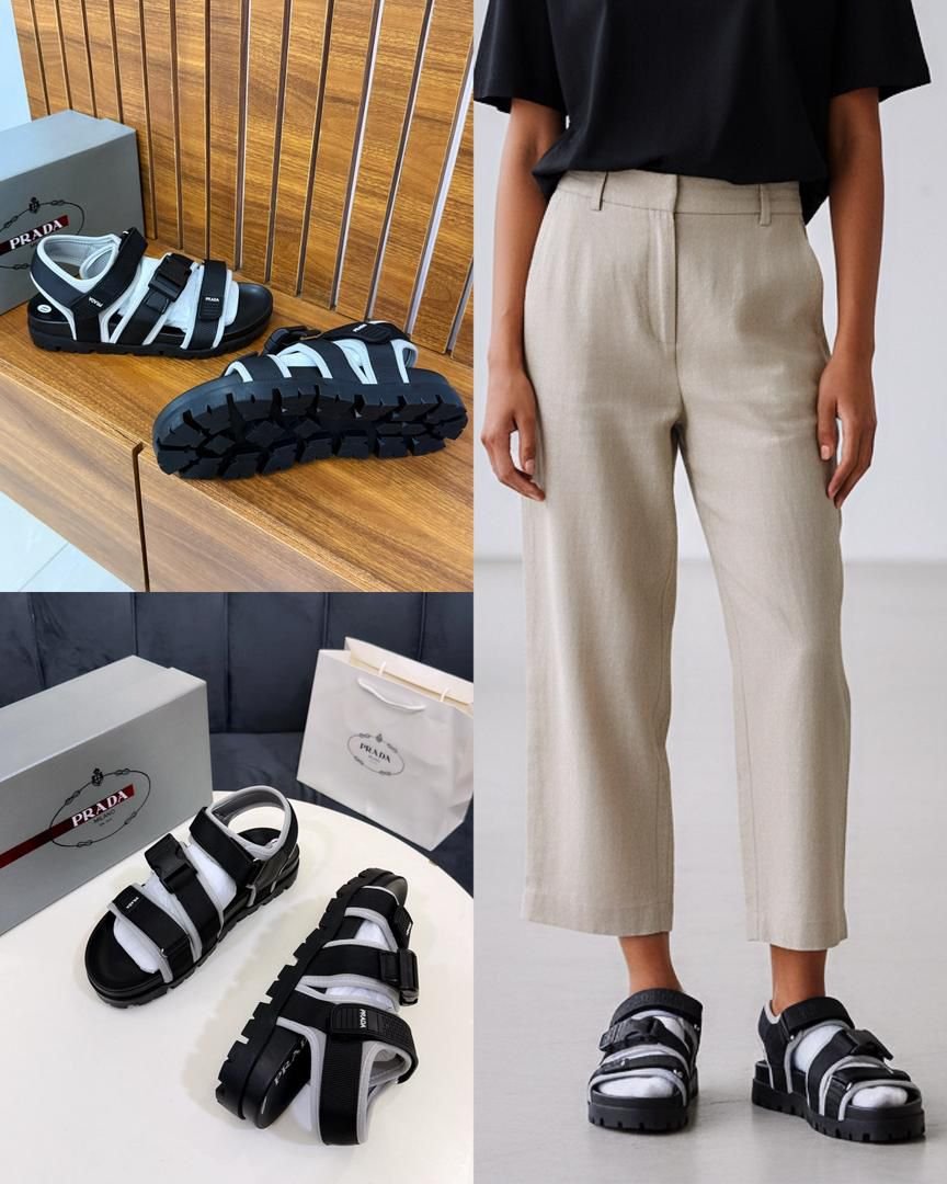 Embrace the utilitarian-chic trend with these striking and practical sport sandals. The design is characterized by its robust, oversized black lug sole, providing a significant platform lift and excellent traction for all-day wear. This monolithic sole contrasts sharply with the sleek white nylon straps that crisscross the foot, secured by durable black Velcro closures for a custom, secure fit.