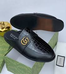 Experience elevated sophistication with the **Gucci Noir Prestige Mules**, a masterpiece crafted for men who appreciate class in every detail. Made from high-quality black leather, these slip-ons feature a sleek crocodile-texture panel that adds depth and richness to the design. The iconic double “G” metallic crest sits boldly on the upper, making a powerful fashion statement without saying a word.