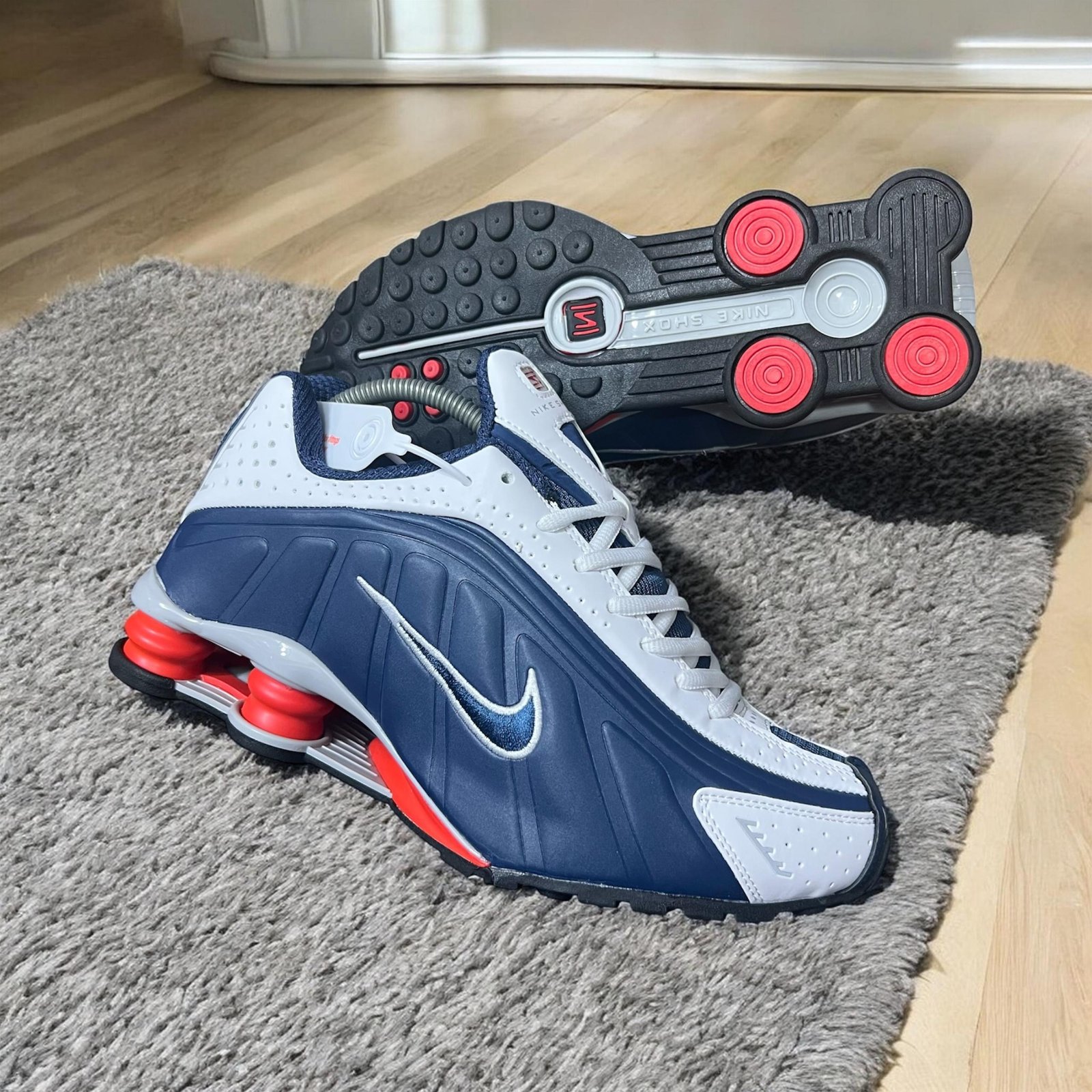 Nike Shox Navy Surge blends modern street style with advanced performance technology. Designed with the iconic Shox cushioning system, it delivers exceptional shock absorption and responsive energy return. The bold navy and white upper creates a clean, sporty look that easily complements both casual and athletic outfits.