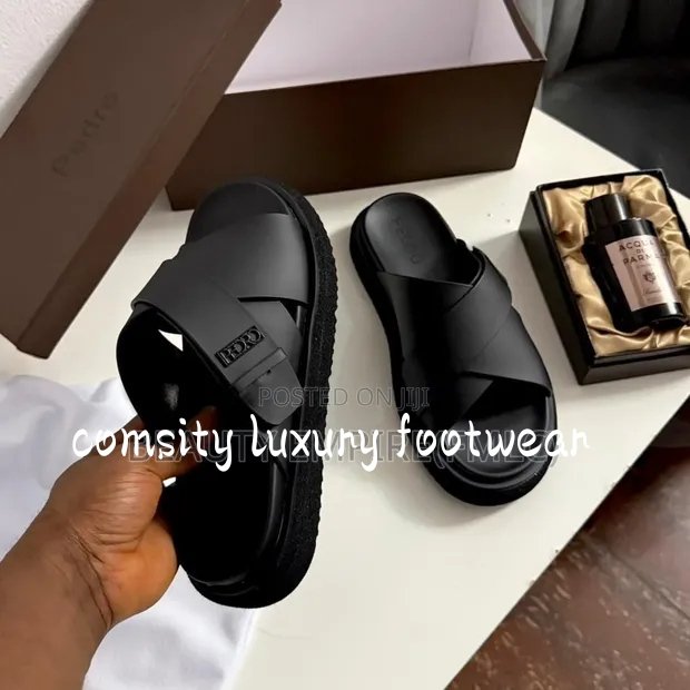 The Pedro Cross-Strap Chunky Slides redefine casual luxury with a bold, architectural silhouette. Crafted with clean lines and a monochrome aesthetic, these sandals are designed for those who value both style and substance.