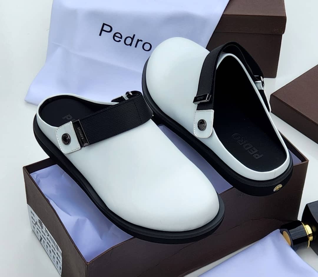 Pedro Elite White Slingback Loafers combine modern sophistication with practical comfort. Featuring a sleek white upper and contrasting black strap, these loafers create a bold yet elegant statement suitable for both casual and semi-formal occasions.