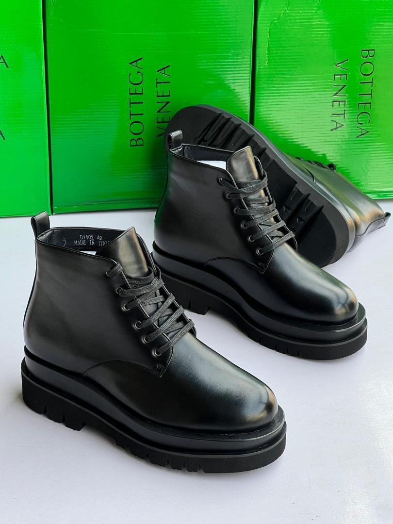 Premium Leather Upper: Crafted from luxurious, smooth black leather that boasts a subtle, polished sheen, the upper features a clean finish with a classic lace-up closure and discreet pull tabs at the ankle for easy on-and-off.
