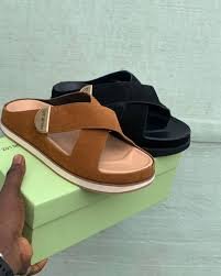 These sliders are crafted for both durability and sophisticated style. The upper features soft, high-quality suede or nubuck material beautifully arranged in a stylish criss-cross strap design, providing a secure and breathable fit.