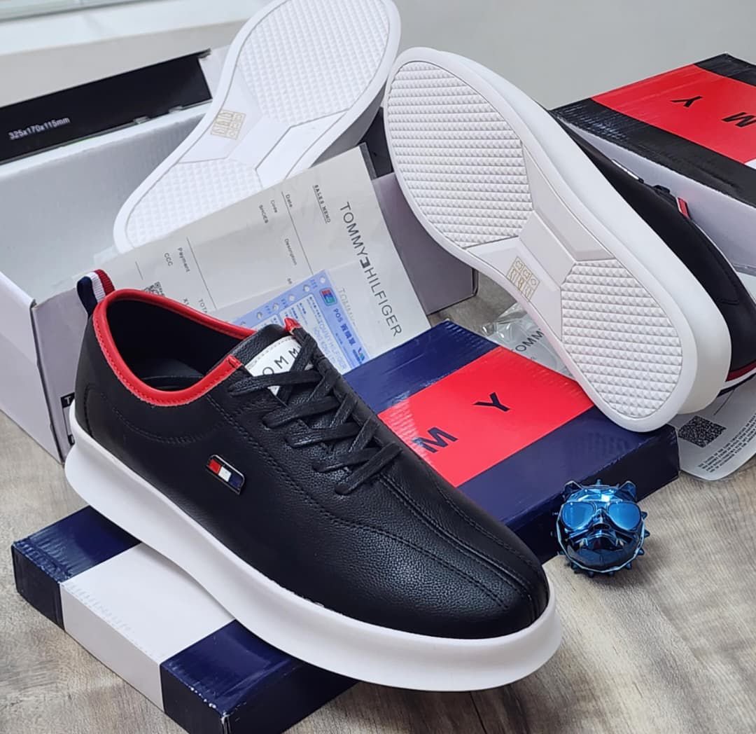 A sleek, premium leather sneaker featuring a bold contrast collar and a chunky white cupsole. Perfect for elevating your casual wardrobe with a touch of iconic Tommy Hilfiger heritage.